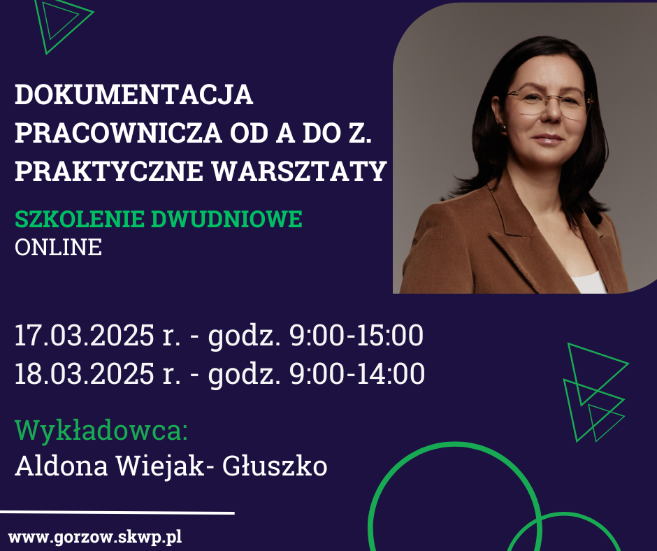 ZAPISY: Dokumentacja pracownicza od A do Z. Praktyczne warsztaty. Szkolenie dwudniowe (13 godz. lek.) - Stowarzyszenie Księgowych w Polsce Oddział Okręgowy w Gorzowie Wlkp.